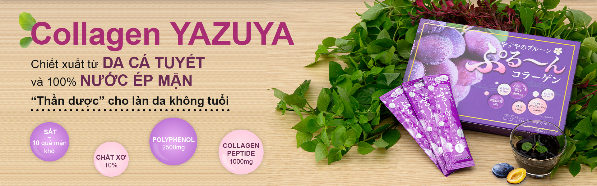 Collagen Yazuya được kết hợp bởi 1.000mg Collagen Peptide chiết xuất từ da cá tuyết và nước ép mận cô đặc tự nhiên 100% xuất xứ California. Collagen Yazuya có độ an toàn rất cao và lượng calo cực thấp khoảng 25 kcal...