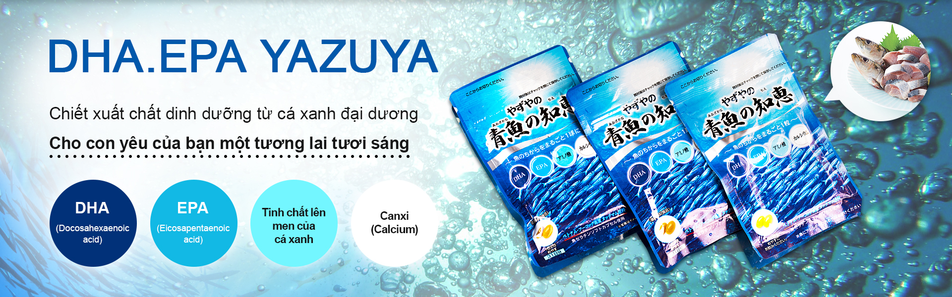 DHA.EPA có trong sản phẩm của Yazuya là các axit béo không bão hòa, thuộc nhóm Omega 3. Ngoài ra, sản phẩm còn được bổ sung thêm canxi và 8 axit amin từ đạm của cá lên men.